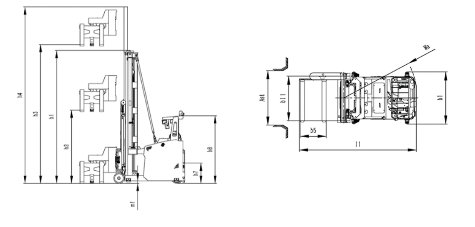 3-way pallet stacker forks can rotate 180°and do left-right side shift without body turning, with high strength mast design. Min. net channel: 1600mm; Max. lifting height: 10000m. The 3-way pallet stacker can improve space utilization and increase the storage capacity.